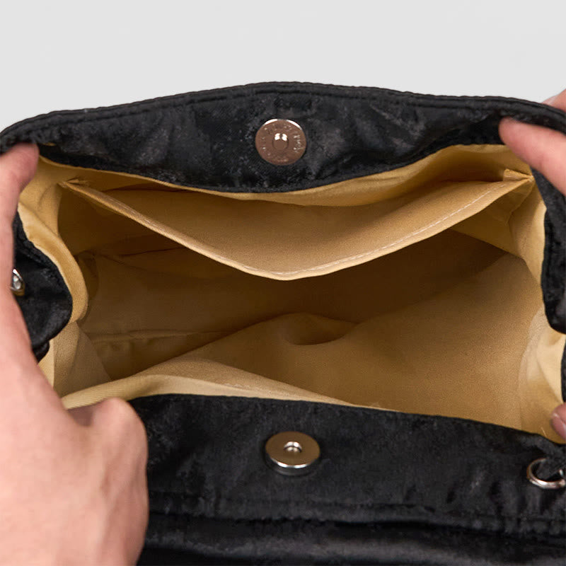 Buddha Stones Handmade Black Peony Embroidered Large Capacity Polyester Cotton Backpack - image 6