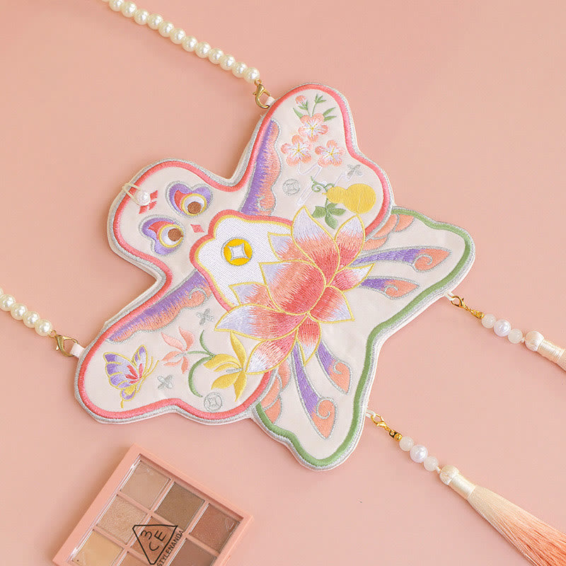 Crafted with meticulous attention to detail, the Buddha Stones Luck Embroidery Hanfu Bag is a fusion of elegance and symbolism. Featuring intricate embroidery of lotus, koi fish, rabbit, and flowers, this crossbody shoulder bag not only elevates your style but also carries the essence of luck and blessings wherever you go.💕
