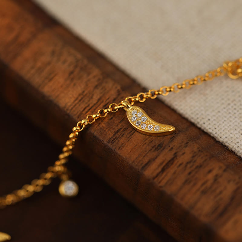 Buddha Stones 925 Sterling Silver Zircon Little Pepper Charm Protection Anklet - Gold Anklet(Circumference 25cm) - image 0