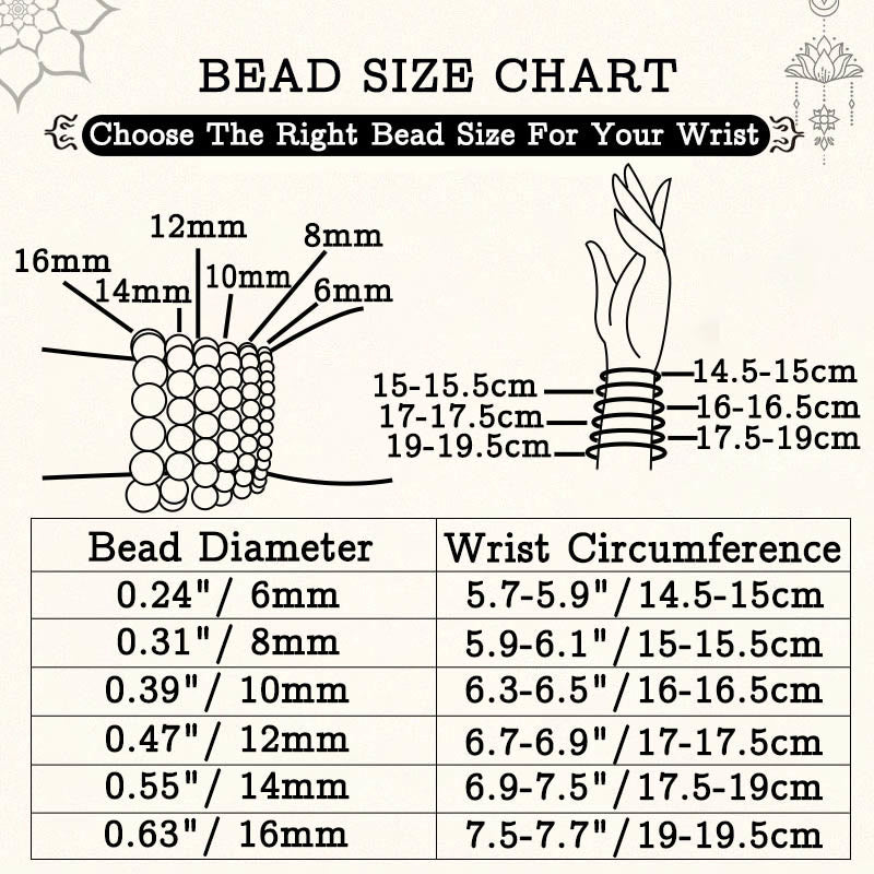 - Bead Size: About 0.39 in (10 mm), 0.47 in (12 mm), 0.55 in (14mm)