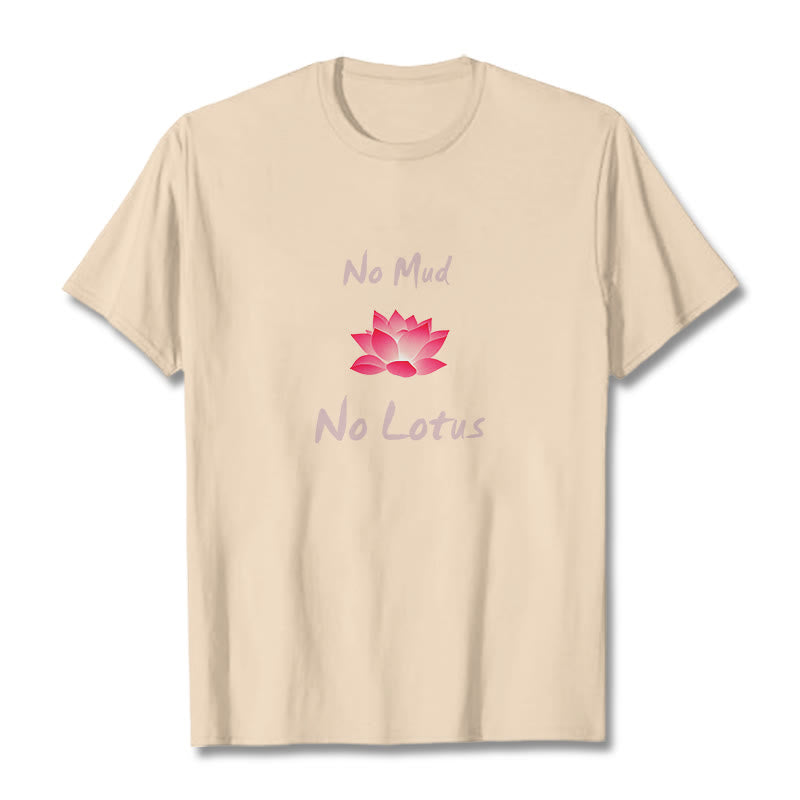 - DESIGN INSPIRATION: This T-Shirt features the phrase "No Mud, No Lotus" alongside a vibrant lotus flower, symbolizing resilience and growth through adversity. It conveys the message that beauty and enlightenment often emerge from challenging circumstances.