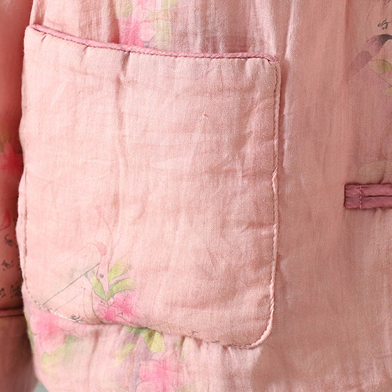 Buddha Stones Printed Women's Long Sleeve Cotton-padded Jacket With Pockets
