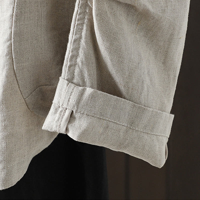 Buddha Stones Pure Color V-neck Women's Cotton Jacket With Pockets - image 15
