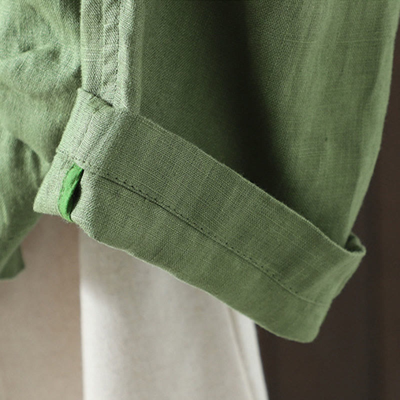 Buddha Stones Pure Color V-neck Women's Cotton Jacket With Pockets - image 21