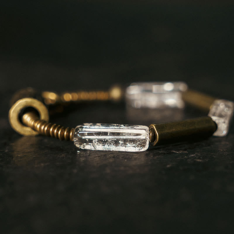 Square White Crystal Copper Bracelet features square white crystal beads that segment the copper bracelet into four distinct sections. A copper pendant adds an elegant touch, symbolizing strength and grounding energy. This harmonious combination of materials creates a meaningful accessory that promotes clarity, balance, and prosperity, making it a perfect choice for individuals seeking spiritual alignment and positive vibes.💕