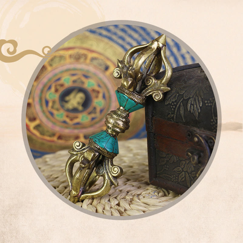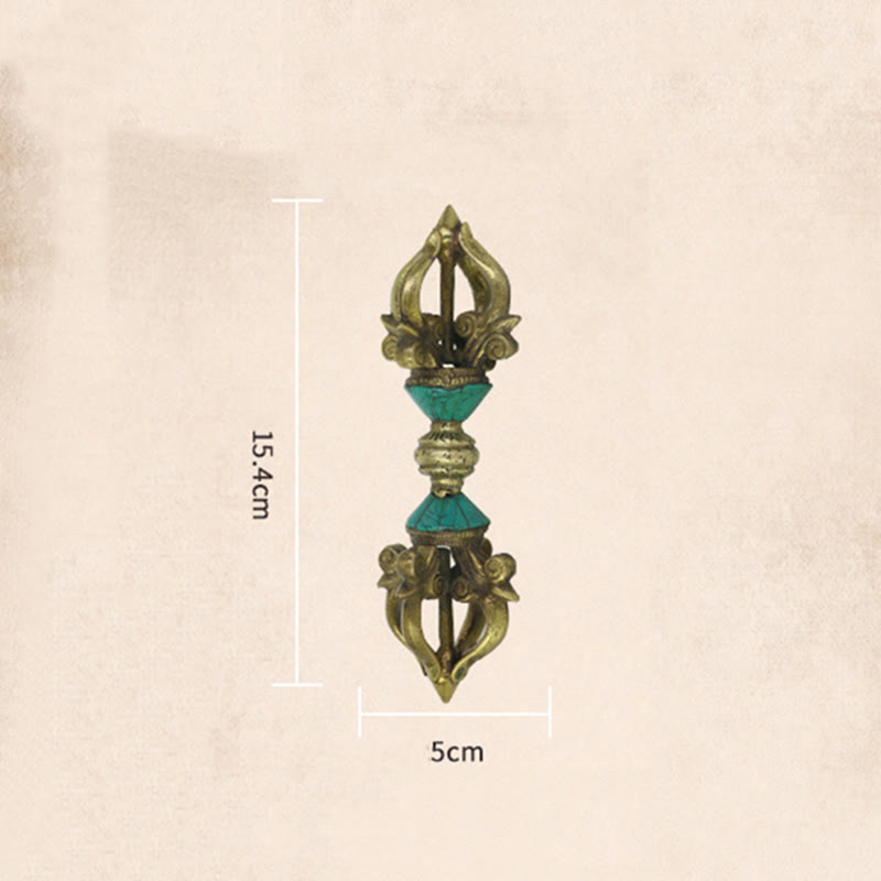 Experience the divine essence of our handcrafted Tibetan Five Prong Vajra Dorje. This exquisite copper decoration embodies spiritual power, enlightenment, and balance. Unlock its symbolic meaning and adorn your sacred space with this artisan-crafted treasure.