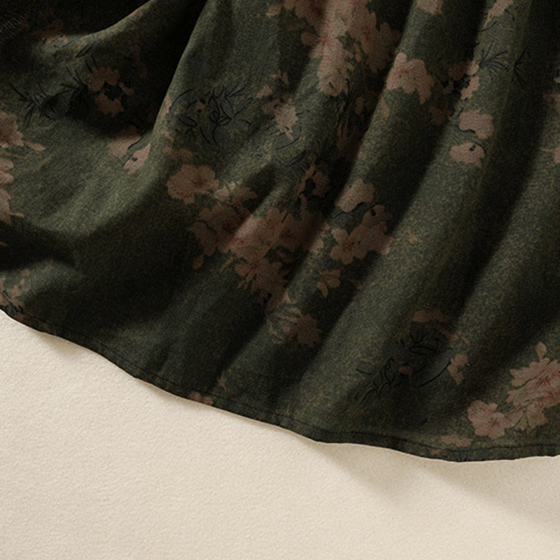 Buddha Stones Casual Flower Printed Pattern Buttons Design Long Sleeve Midi Dress With Pockets - OliveDrab - US12,UK/AU16,EU44 (2XL) - image 0