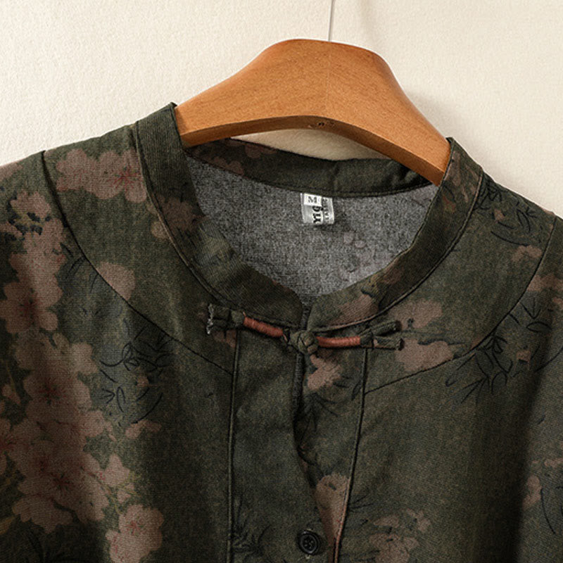 Buddha Stones Casual Flower Printed Pattern Buttons Design Long Sleeve Midi Dress With Pockets