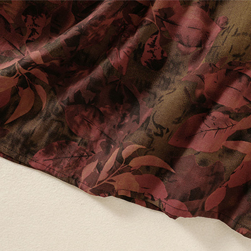 Buddha Stones Casual Flower Printed Pattern Buttons Design Long Sleeve Midi Dress With Pockets - IndianRed - US12,UK/AU16,EU44 (2XL) - image 7