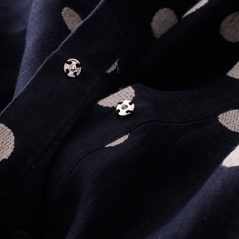 Buddha Stones Polka Dot V-Neck Lace-up Cotton Linen Women's Midi Dress With Pockets - Navy - US8-10,UK/AU12-14,EU40-42 (2XL) - image 0