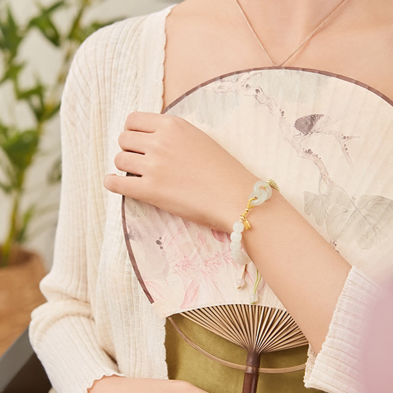 Wrist Circumference: 14-17cm - Bead Size: Hetian Jade 7*8mm, Chalcedony 6mm, Fu Character 6*5mm
