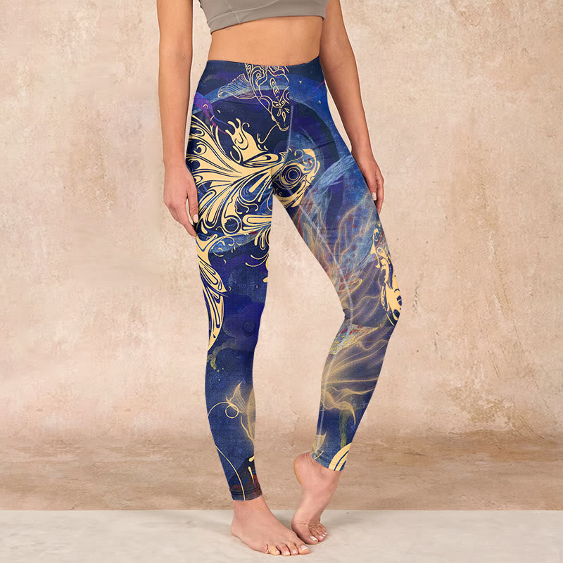 Design Inspiration: The leggings feature a design of koi fish and auspicious clouds, symbolizing prosperity and good fortune. The koi fish represent perseverance and the pursuit of success, while the clouds signify spiritual elevation and blessings, making these leggings a reflection of abundance and the harmonious flow of positive energy.