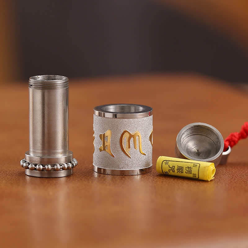 Buddha Stones Tibet Om Mani Padme Hum Shurangama Mantra Titanium Steel Wisdom Amulet Necklace Pendant - 1.2cm*1.8cm - Silver - Red String - image 14