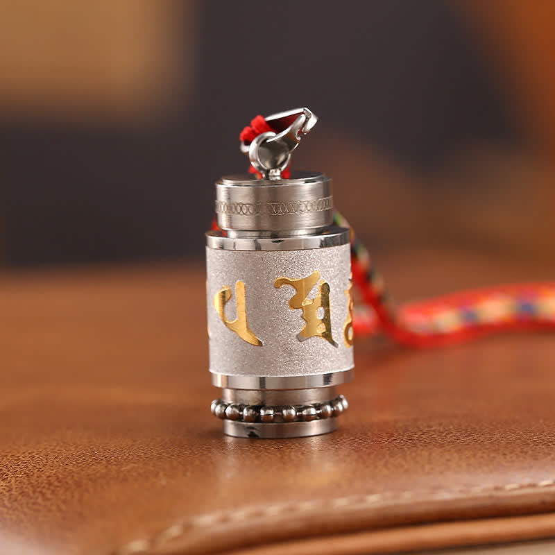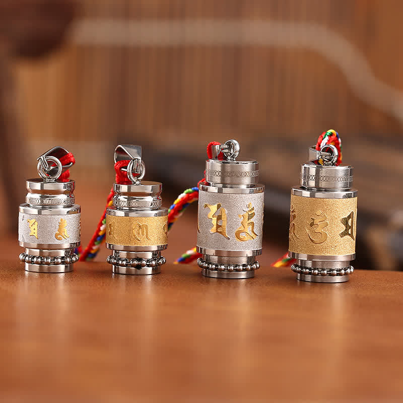 Buddha Stones Tibet Om Mani Padme Hum Shurangama Mantra Titanium Steel Wisdom Amulet Necklace Pendant - 1.4*2.4cm - Silver - Red String - image 28