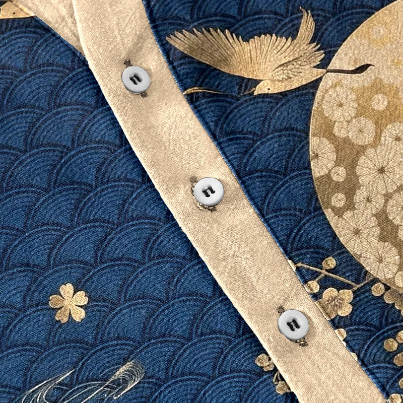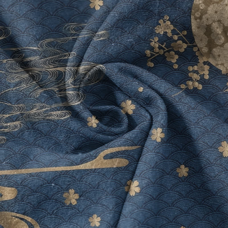 - Design: Repeating plum blossom, full moon and crane motifs draw on traditional oriental symbolism: the crane embodies longevity and nobility, the plum blossom represents resilience and purity, and the full moon signifies completeness and good fortune. The all-over pattern delivers an elegant, ethnic-inspired harmony and rich decorative texture.