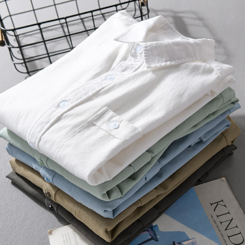 Buddha Stones Casual Solid Buttons Down Decorative Pocket Men's Stand Collar Long Sleeve Cotton Shirt - image 1
