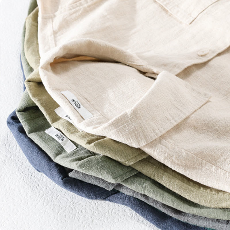 Buddha Stones Commute Men's Plain Buttons Design Cotton Linen Long Sleeve Shirt With Pockets