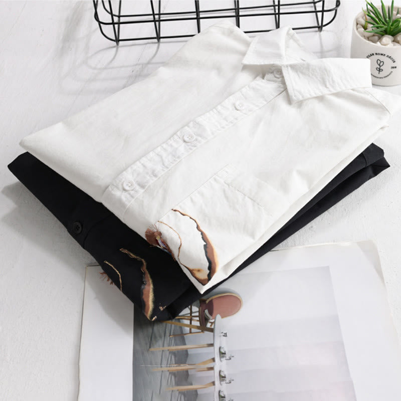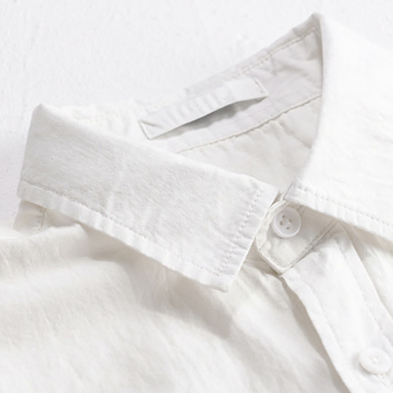 Buddha Stones Summer Buttons Down Bird Embroidery Decorative Pocket Men's Short Sleeve Cotton Shirt - White - US/UK/AU40,EU50 (3XL) - image 0