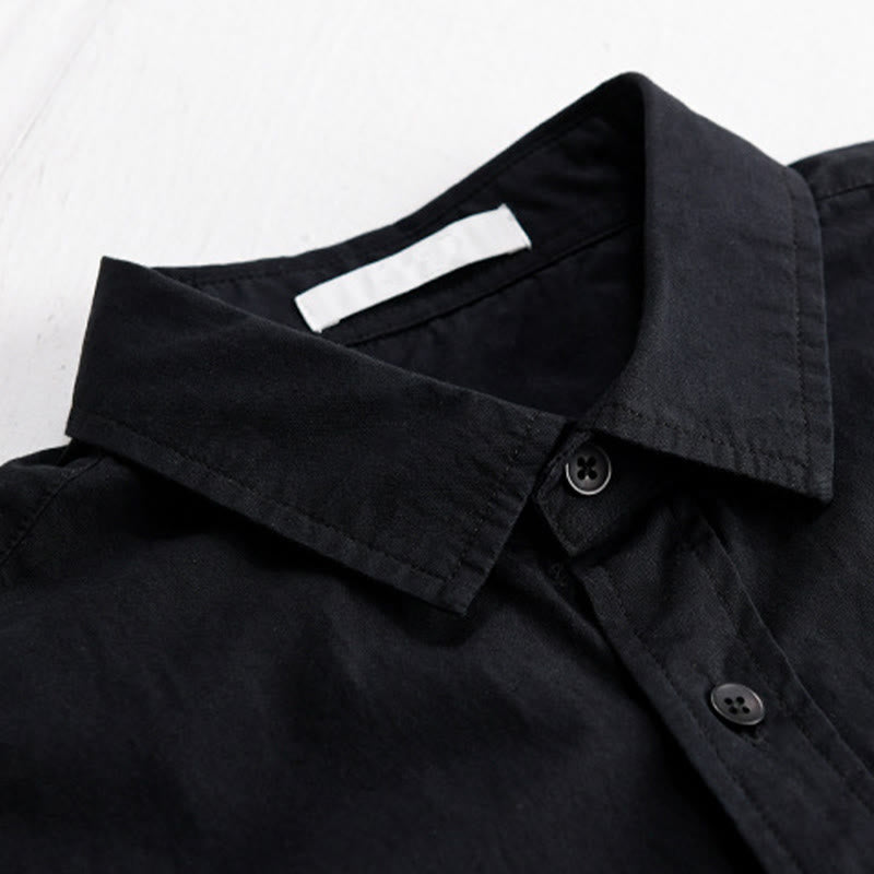 Buddha Stones Summer Buttons Down Bird Embroidery Decorative Pocket Men's Short Sleeve Cotton Shirt - Black - US/UK/AU40,EU50 (3XL) - image 10