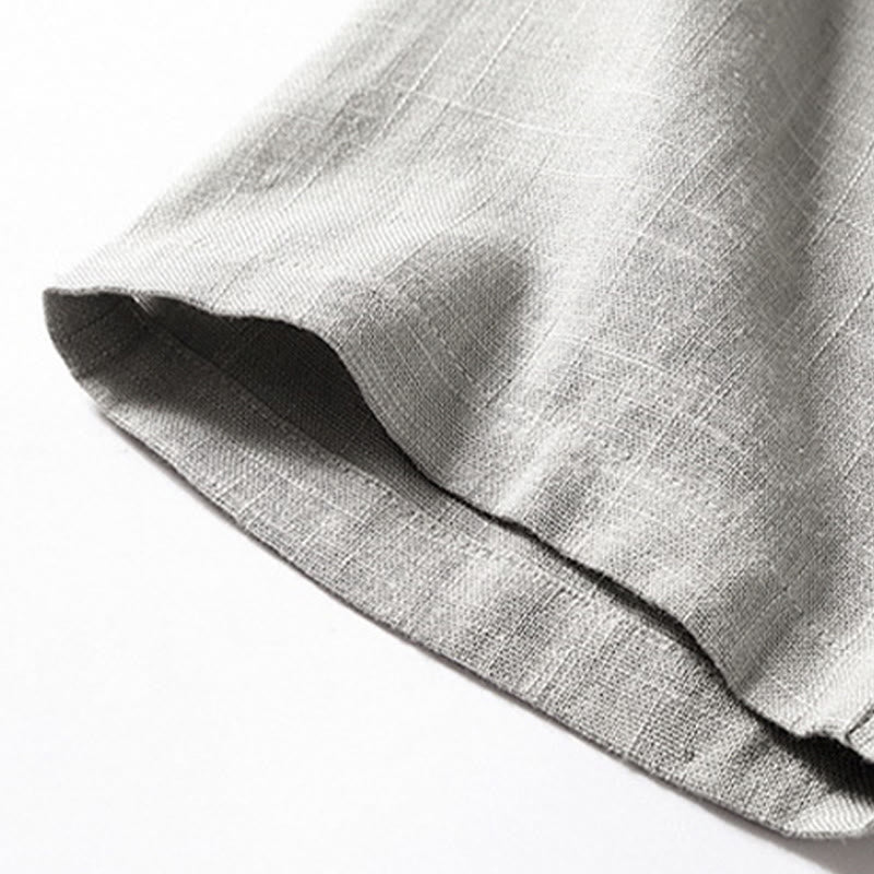 Buddha Stones Loose Men's Shirt Solid Color Notched Neck Top Short Sleeve Comfy Button Breathable Cotton Linen Shirt