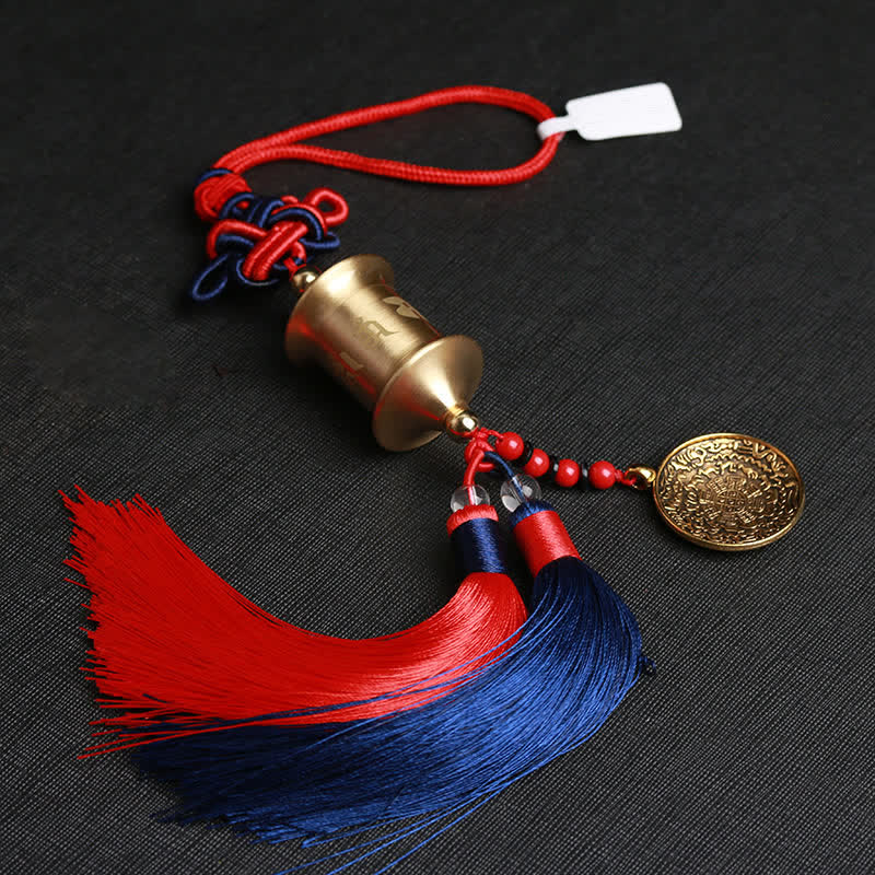 Buddha Stones Tibet Om Mani Padme Hum Prayer Wheel Nine Palace Eight Trigrams Copper Car Hanging Decoration - image 1