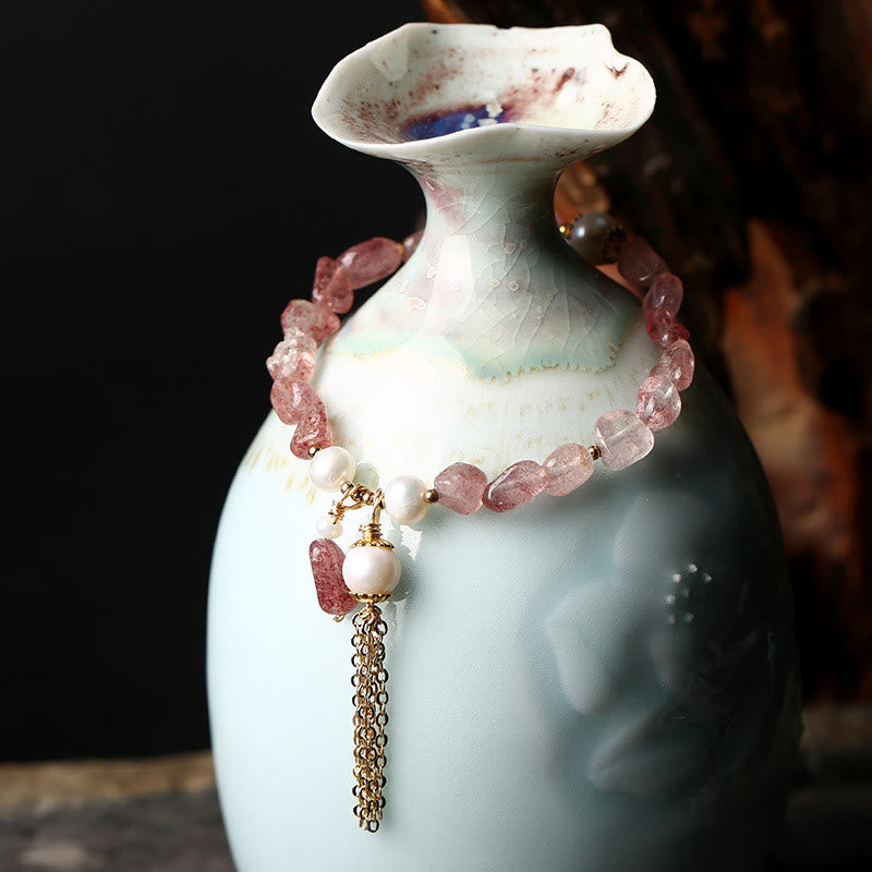 Elevate your energy with the Buddha Stones Natural Strawberry Quartz Pearl 14k Gold Plated Love Healing Bracelet. This exquisite piece combines the heart-opening properties of Strawberry Quartz with the wisdom and optimism of pearls. Embrace love, healing, and positive energy, adorned with 14k gold plating, and let the harmonious blend of gemstones enhance your well-being and sincerity.💕
