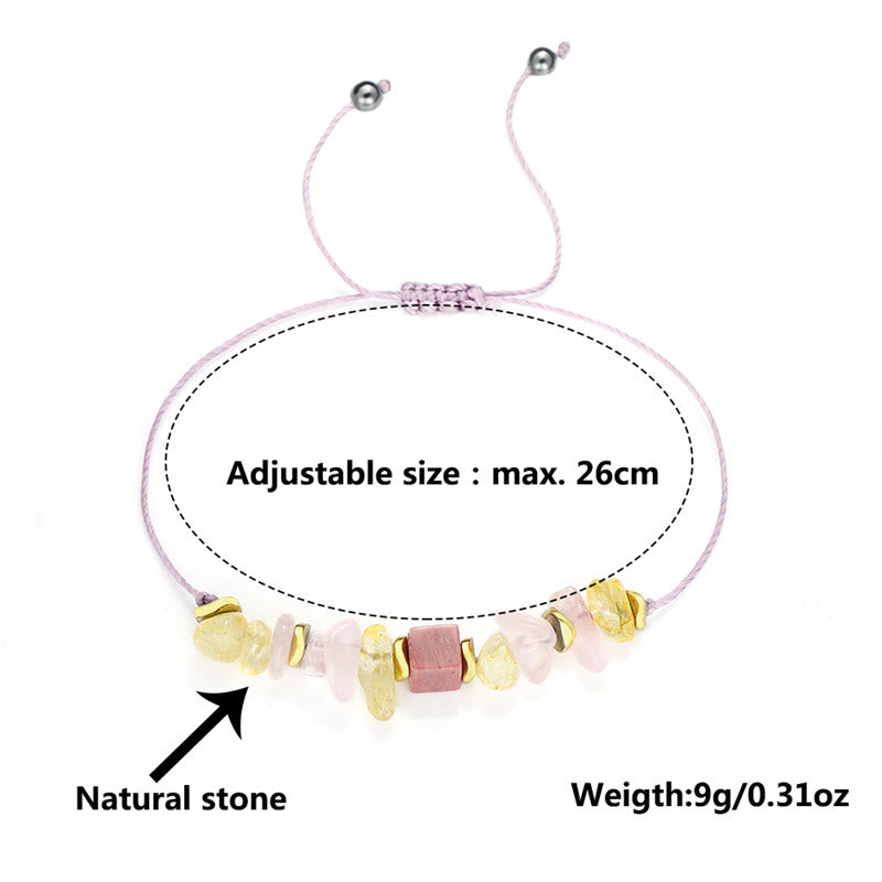 - Material: Rose Quartz, Citrine, Rhodonite, Copper, Rope