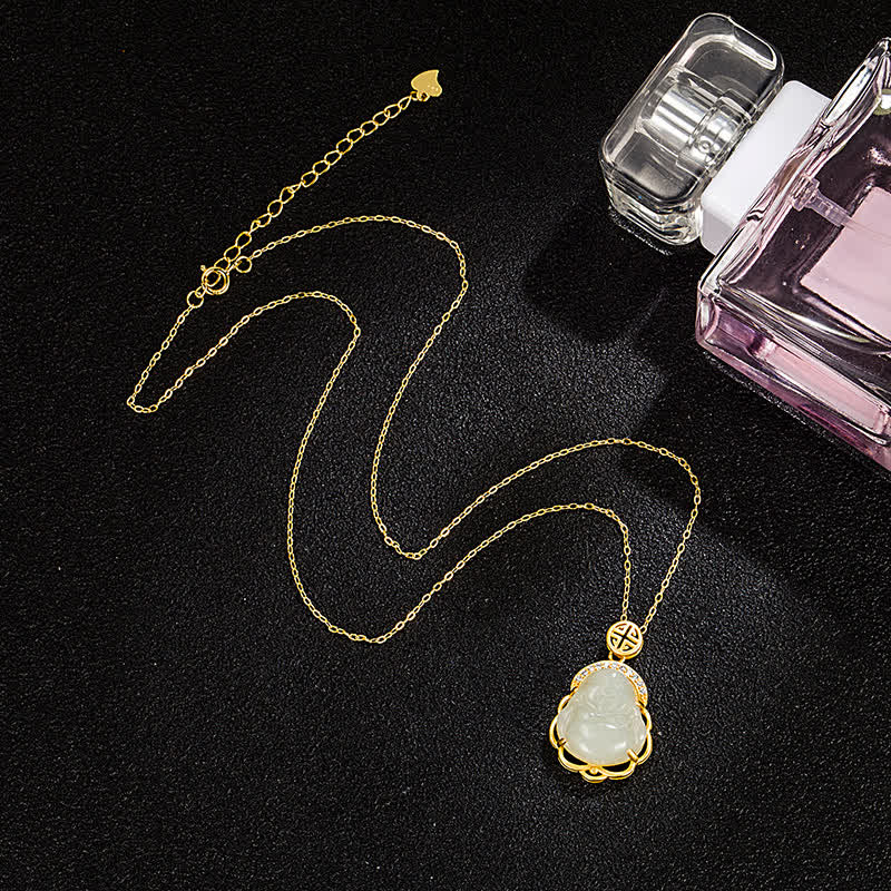 Buddha Stones 925 Sterling Silver Laughing Buddha Hetian White Jade Protection Necklace Pendant - Hetian White Jade(Protection♥Happiness) - image 0