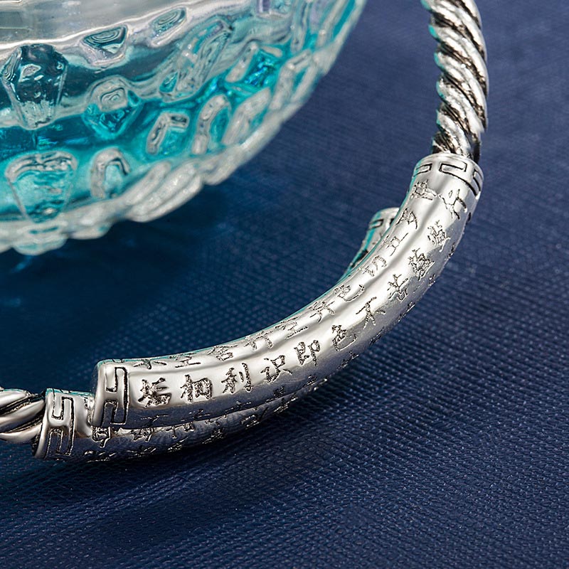 Buddha Stones Tibetan Heart Sutra White Copper Charm Bracelet - White Copper - image 0