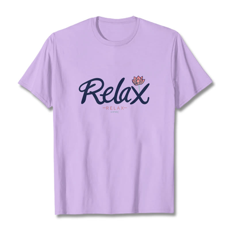RELAX Lotus Tee T-shirt features a serene lotus design symbolizing purity and enlightenment. Crafted from soft, breathable fabric, this t-shirt provides exceptional comfort. The calming lotus image serves as a gentle reminder to find inner peace and stay centered. This t-shirt brings mindfulness and serenity into your everyday life.