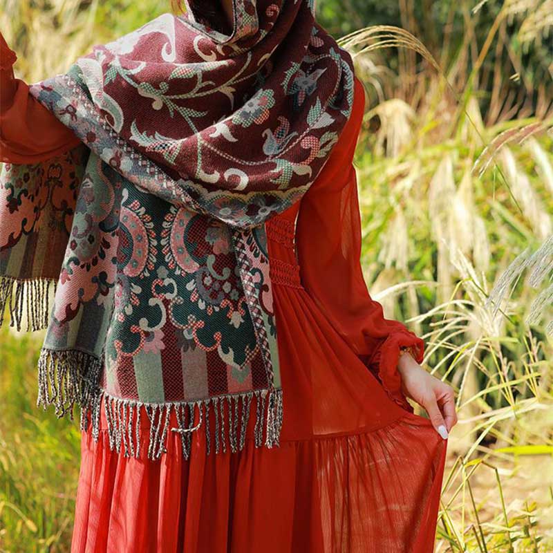 - Multiple Uses: This high-quality designed fashionable Tibetan scarf can be used as a travel blanket, evening shawl, or throw blanket when snuggling on the sofa, it can be worn with coats, sweaters, pullover, shirts, and more.