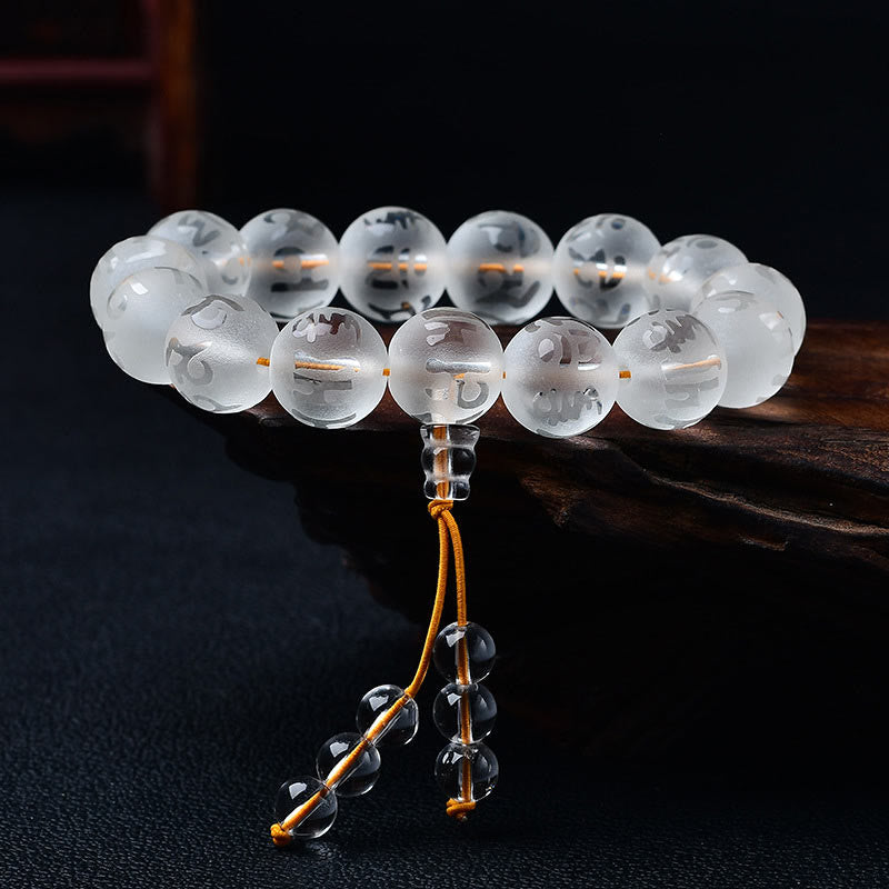 White Crystal Black Onyx Bracelet features gemstones engraved with "Om Mani Padme Hum," symbolizing compassion and wisdom. Available in two variations, white crystal promotes clarity and spiritual growth, while black onyx offers grounding and protection. The meaningful design inspires mindfulness and inner peace, making it an ideal accessory for meditation and connecting with spiritual energy during daily practices.💕