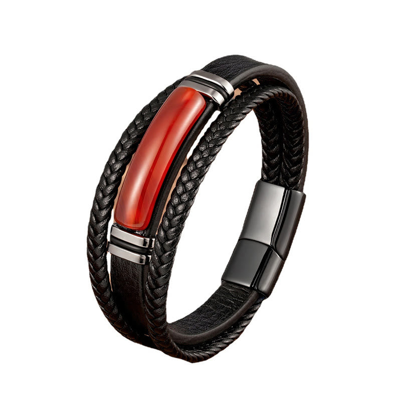 Buddha Stones Natural Stone Green Agate Power Multilayered Braided Leather Bracelet - Red Agate - 23cm - image 7