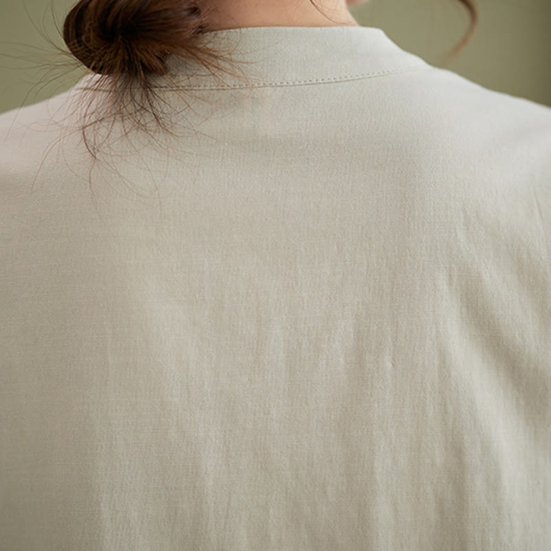 Buddha Stones 2Pcs Casual Solid Color Button Design Half Sleeve Shirt Wide Leg Pants With Pockets Cotton Zen Clothing Women's Set - image 28