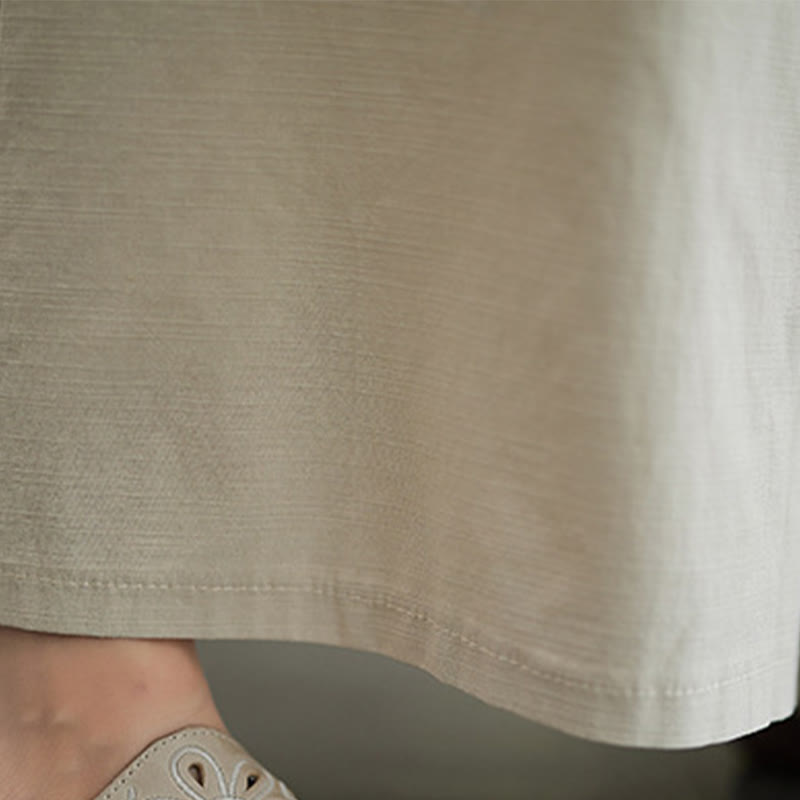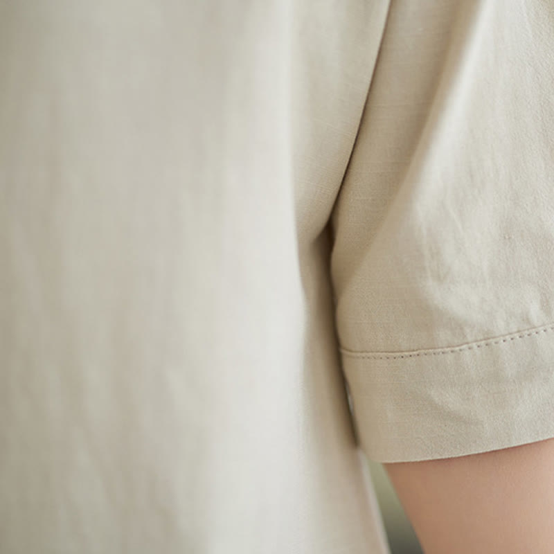 Buddha Stones 2Pcs Casual Solid Color Button Design Half Sleeve Shirt Wide Leg Pants With Pockets Cotton Zen Clothing Women's Set - Beige - US8-10,UK/AU12-14,EU40-42 (2XL) - image 16