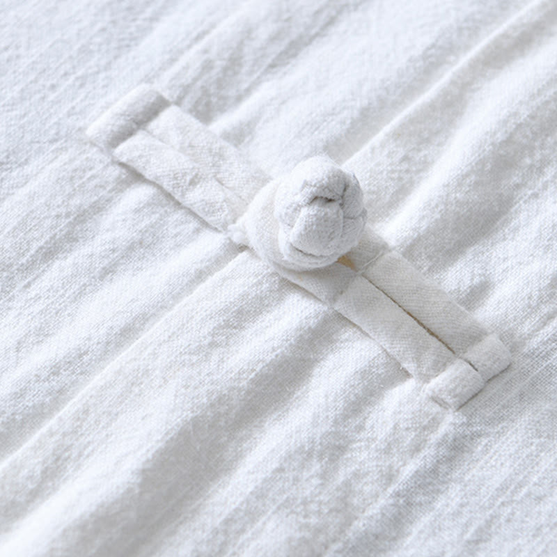 Buddha Stones Frog-Button Chinese Tang Suit Cotton Linen Men Jacket Shirt With Pockets - White - US/UK/AU50,EU60 (5XL) - image 7