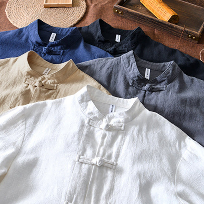 Buddha Stones Frog-Button Chinese Tang Suit Cotton Linen Men Jacket Shirt With Pockets - image 33