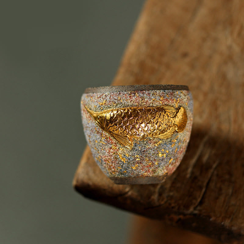 Buddha Stones Golden Arowana Koi Fish Ceramic Teacup Kung Fu Tea Cup