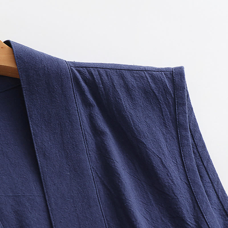 Buddha Stones 2Pcs Wudang Tai Chi Ceremony Solid Long Sleeve Men's Taoist Long Robe Kimono Sleeveless Vest Suit - image 6