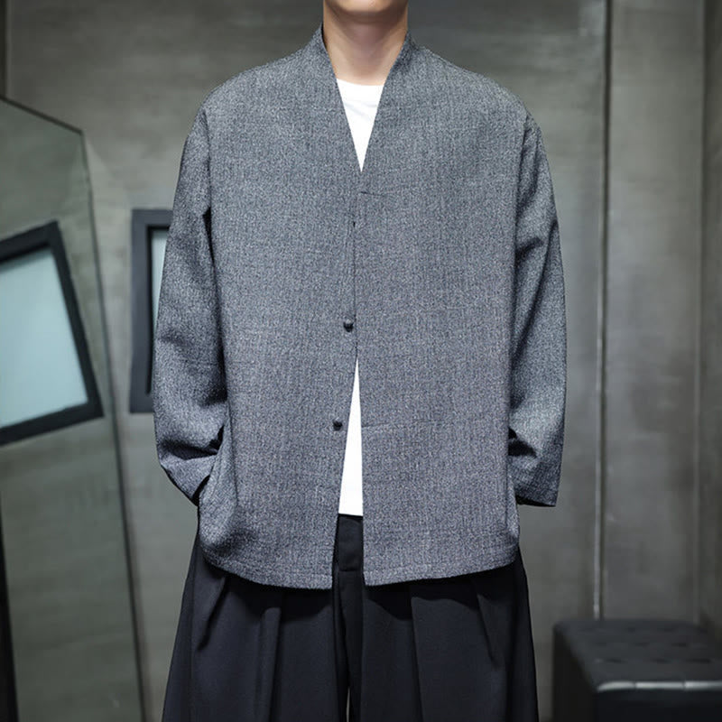 Buddha Stones Spring Fall Solid Color Long Sleeve Men's Jacket