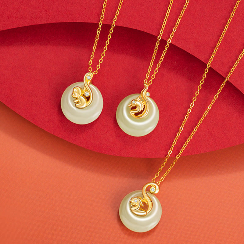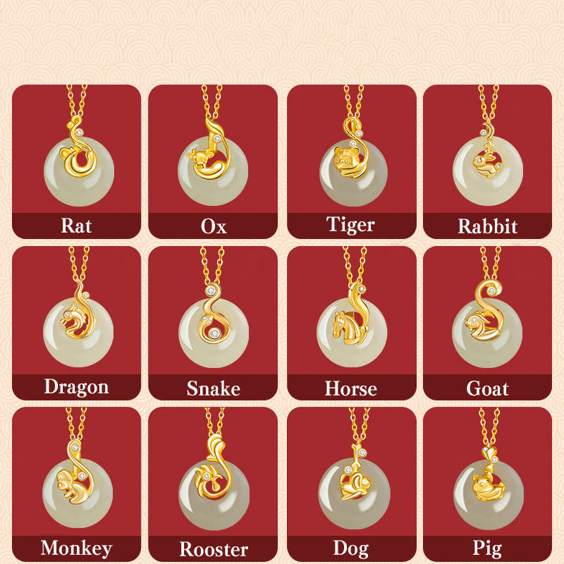 Chinese Zodiac Hetian Jade Necklace Pendant features a peace buckle and a Chinese Zodiac animal decoration, uniquely designed with different animals for each zodiac sign. The Hetian jade symbolizes peace and harmony, while the animal pendant represents abundance and prosperity. Crafted from 925 sterling silver, this pendant serves as a meaningful reminder of the power of nature and the zodiac’s influence in fostering personal growth.💕