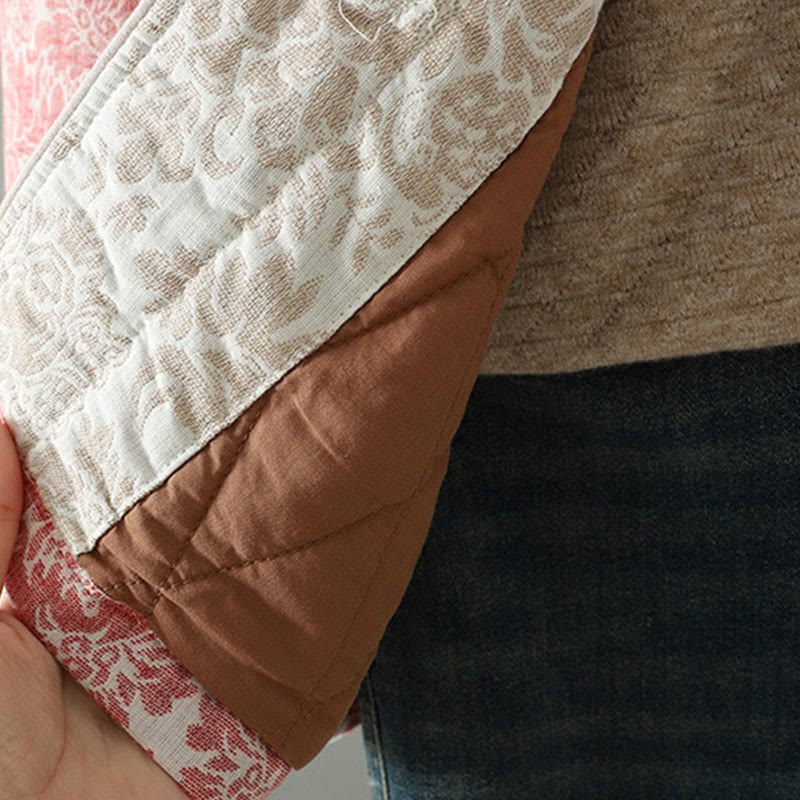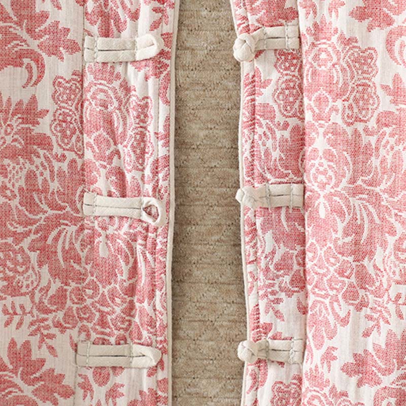 Buddha Stones Women's Peony Flowers Frog-Button Design Long Sleeve Thermal Jacket With Pockets